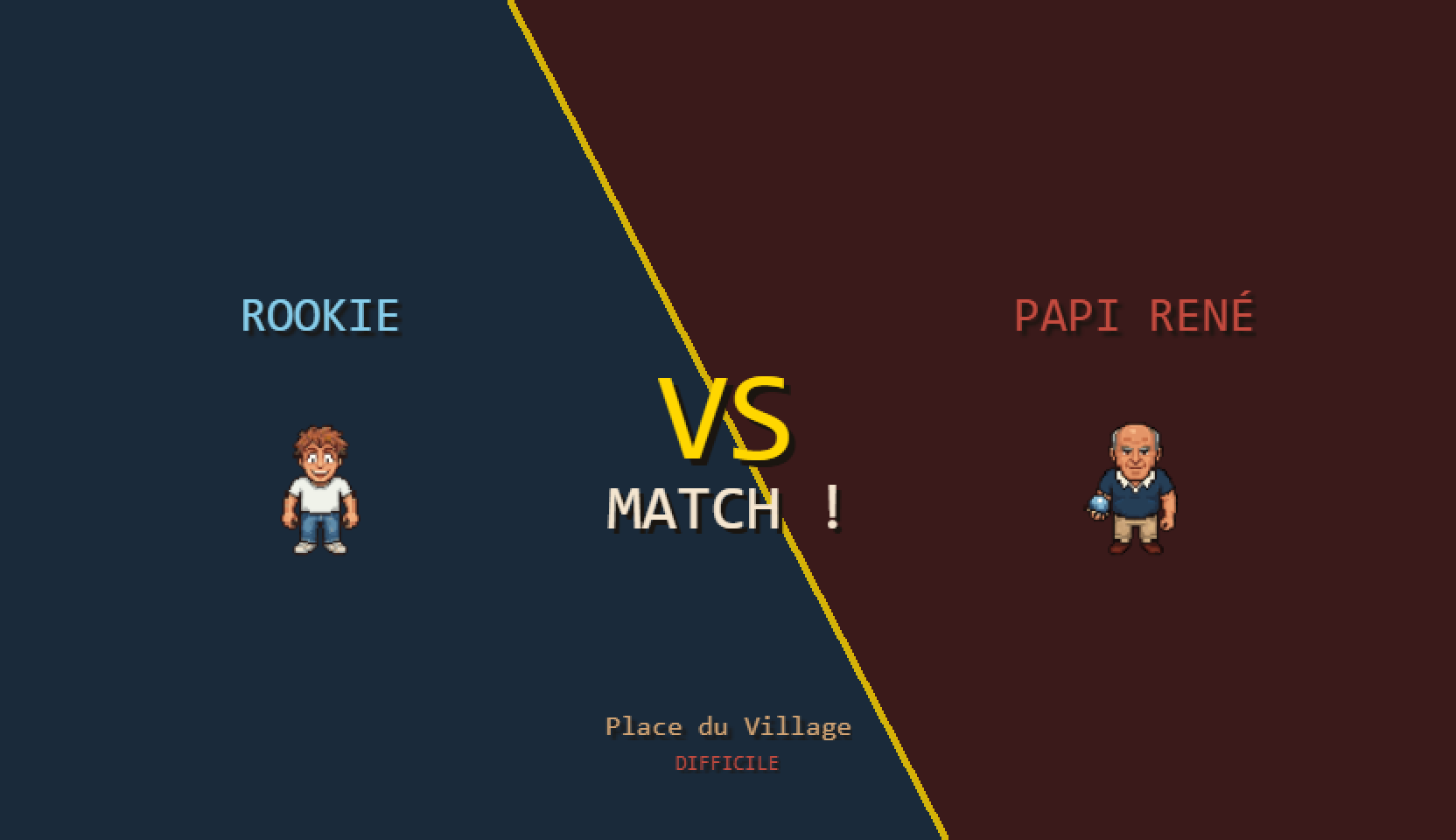 Tu incarnes le Rookie, un nouveau venu qui ose défier les habitués du boulodrome. Onze adversaires t'attendent, chacun avec son caractère, son style de jeu, et sa manière bien à lui de te mettre la pression.